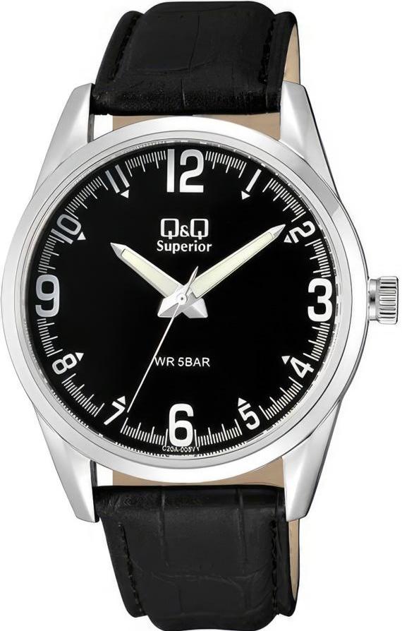 Мужские наручные часы Q&Q Superior C20AJ008Y. Точный кварцевый механизм с аналоговой индикацией. Ремешок изготовлен из кожи. Браслет из нержавеющей стали. Прочное, устойчивое к царапинам минеральное стекло защищает часы от повреждений. Часы являются водонепроницаемыми до 5 Бар. Цвет циферблата: Серебристый. Цвет корпуса: Черный. На стрелки и отметки нанесен светонакопительный состав, благодаря этому считывать информацию с циферблата возможно и в темноте. Толщина: 10 мм. Гарантия: 1 год.