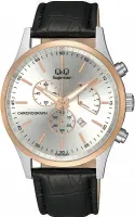 Мужские наручные часы Q&Q Superior C24AJ010Y. Точный кварцевый механизм с аналоговой индикацией. Ремешок изготовлен из кожи. Функция хронографа. Браслет из нержавеющей стали. Прочное, устойчивое к царапинам минеральное стекло защищает часы от повреждений. На циферблате отображается текущее число месяца и день недели. Часы являются водонепроницаемыми до 5 Бар. Цвет циферблата: Серебристый. Цвет циферблата: Розовое золото. Цвет корпуса: Серебристый. На стрелки и отметки нанесен светонакопительный состав, благодаря этому считывать информацию с циферблата возможно и в темноте. Толщина: 11 мм. Гарантия: 1 год.