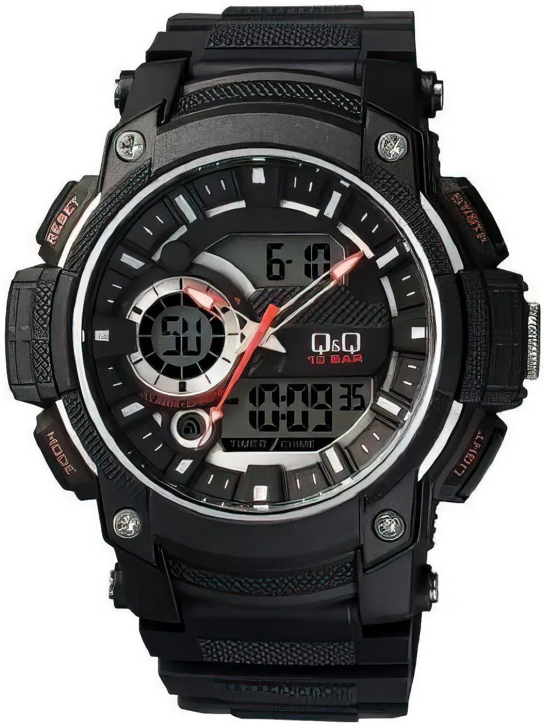 Женские наручные часы Q&Q Superior GW90J002Y. Точный кварцевый механизм с аналого-цифровой индикацией. Полимерный корпус надежно защищает часы от механических повреждений. Светодиодная подсветка. На циферблате отображается текущее число месяца и день недели. Функция хронографа. Полимерный ремешок. Натуральный полимерный материал является идеальным для изготовления ремешка благодаря своей чрезвычайной прочности и гибкости. Органическое стекло. Часы являются водонепроницаемыми до 10 Бар. Цвет корпуса: Черный. Цвет циферблата: Черный. Ширина (с заводной головкой): 44мм. Толщина: 11мм. Гарантия: 1 год.