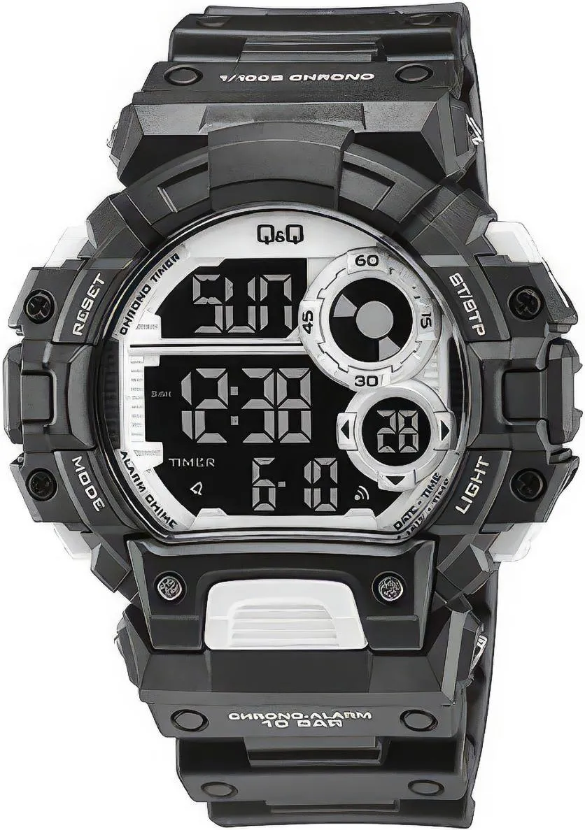 Мужские наручные часы Q&Q Superior M144J009Y. Точный кварцевый механизм с цифровой индикацией. Полимерный корпус надежно защищает часы от механических повреждений. Светодиодная подсветка. На циферблате отображается текущее число, месяц и день недели. Функция хронографа. Полимерный ремешок. Натуральный полимерный материал является идеальным для изготовления ремешка благодаря своей чрезвычайной прочности и гибкости. Органическое стекло. Часы являются водонепроницаемыми до 10 Бар. Цвет корпуса: Серый. Цвет циферблата: Черный. Ширина (с заводной головкой): 52мм. Толщина: 15мм. Гарантия: 1 год.