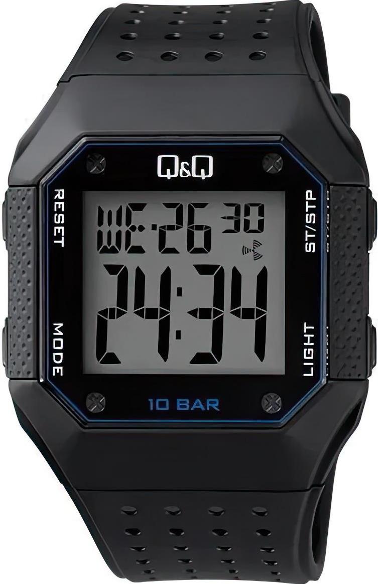 Электронные часы с точность хода не хуже -10 +15 сек./в месяц. • Ежедневный будильник со звуковым сигналом. • Секундомер. • Автоматический календарь. • Электрическая подсветка. • Легкое и прочное хезалитовое стекло. • Корпус из полимерных материалов. • Водозащита до 10 АТМ. • Синий ремешок из полимерного материала. • Простая ремешковая застежка. • Диаметр 40 мм, толщина 12 мм. Вес 48 мм.