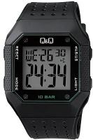 Электронные часы с точность хода не хуже -10 +15 сек./в месяц. • Ежедневный будильник со звуковым сигналом. • Секундомер. • Автоматический календарь. • Электрическая подсветка. • Легкое и прочное хезалитовое стекло. • Корпус из полимерных материалов. • Водозащита до 10 АТМ. • Черный ремешок из полимерного материала. • Простая ремешковая застежка. • Диаметр 40 мм, толщина 12 мм. Вес 48 мм.