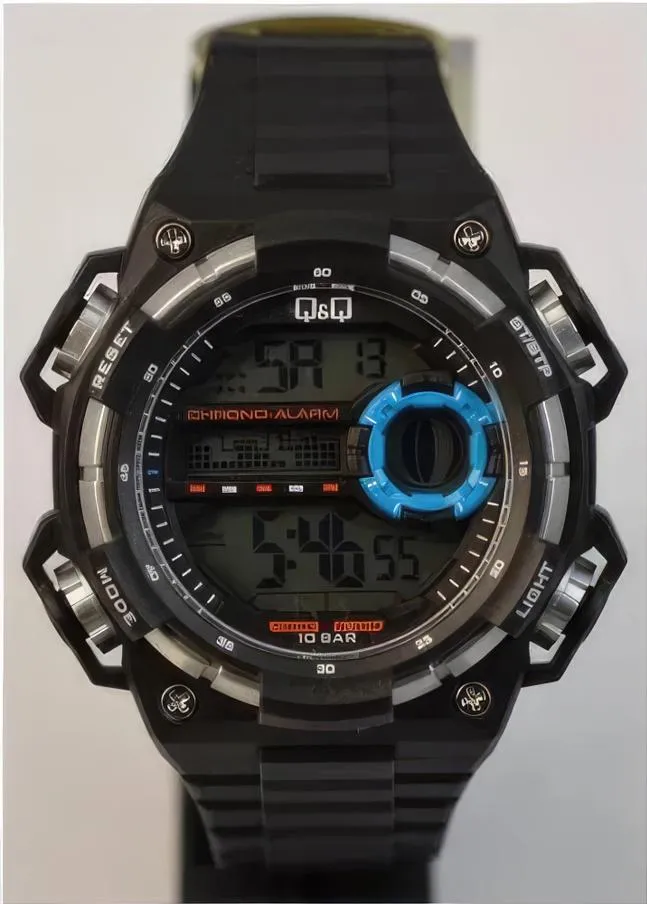 Мужские наручные часы Q&Q Superior M163J800Y. Точный кварцевый механизм с цифровой индикацией. Полимерный корпус надежно защищает часы от механических повреждений. Светодиодная подсветка. На циферблате отображается текущее число месяца и день недели. Функция хронографа. Полимерный ремешок. Натуральный полимерный материал является идеальным для изготовления ремешка благодаря своей чрезвычайной прочности и гибкости. Органическое стекло. Часы являются водонепроницаемыми до 10 Бар. Цвет корпуса: Черный. Цвет циферблата: Серый. Ширина (с заводной головкой): 50мм. Толщина: 10мм. Гарантия: 1 год.