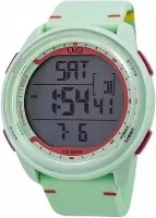 Мужские наручные часы Q&Q Superior M178J808Y. Точный кварцевый механизм с цифровой индикацией. Полимерный корпус надежно защищает часы от механических повреждений. Светодиодная подсветка. На циферблате отображается текущее число месяца и день недели. Функция хронографа. Полимерный ремешок. Натуральный полимерный материал является идеальным для изготовления ремешка благодаря своей чрезвычайной прочности и гибкости. Прочное, устойчивое к царапинам минеральное стекло защищает часы от повреждений.Часы являются водонепроницаемыми до 10 Бар. Цвет корпуса: Зеленый. Ширина (с заводной головкой): 46мм. Толщина: 13мм. Гарантия: 1 год.