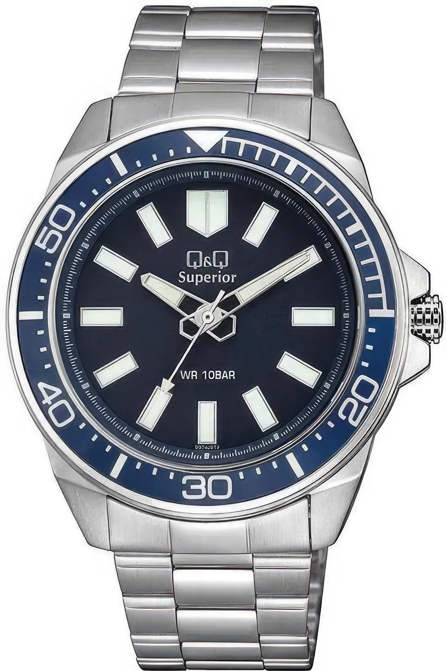Мужские наручные часы Q&Q Superior S374J212Y. Точный кварцевый механизм с аналоговой индикацией. Корпус изготовлен из высококачественной нержавеющей стали 316L с высокими антикоррозийными свойствами. На стрелки и отметки нанесен светонакопительный состав, благодаря этому считывать информацию с циферблата возможно и в темноте. Браслет из нержавеющей стали. Прочное, устойчивое к царапинам минеральное стекло защищает часы от повреждений. Часы являются водонепроницаемыми до 10 Бар. Цвет корпуса: Черный. Цвет циферблата: Синий. Ширина (с заводной головкой): 44мм. Толщина: 12мм. Гарантия: 1 год.