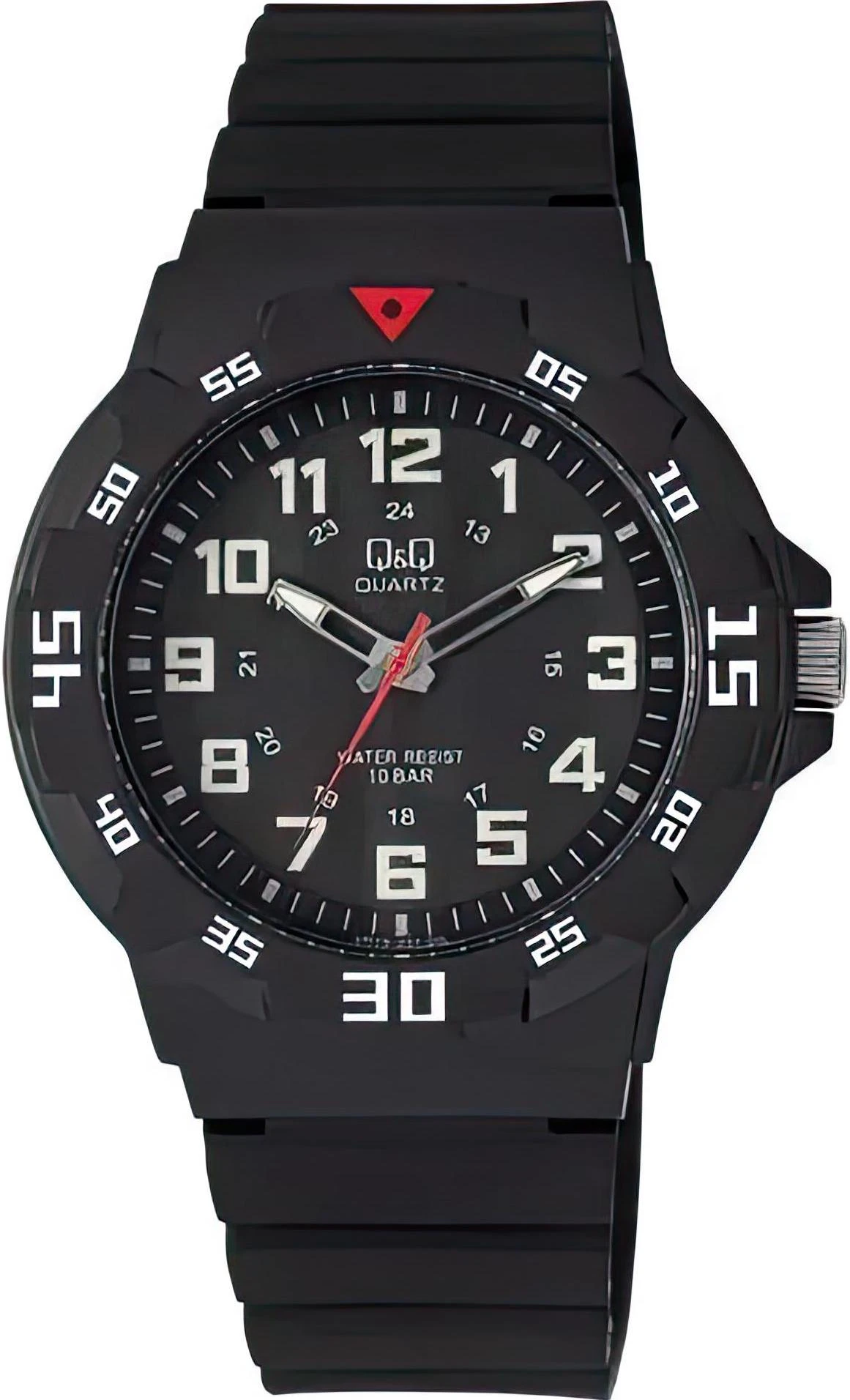 Мужские наручные часы Q&Q Superior VR18J001Y. Точный кварцевый механизм с аналого-цифровой индикацией. Полимерный корпус надежно защищает часы от механических повреждений. На стрелки и отметки нанесен светонакопительный состав, благодаря этому считывать информацию с циферблата возможно и в темноте. Полимерный ремешок. Натуральный полимерный материал является идеальным для изготовления ремешка благодаря своей чрезвычайной прочности и гибкости. Прочное, устойчивое к царапинам минеральное стекло защищает часы от повреждений.Часы являются водонепроницаемыми до 10 Бар. Цвет корпуса: Черный. Цвет циферблата: Черный. Ширина (с заводной головкой): 43мм. Толщина: 11мм. Гарантия: 1 год.