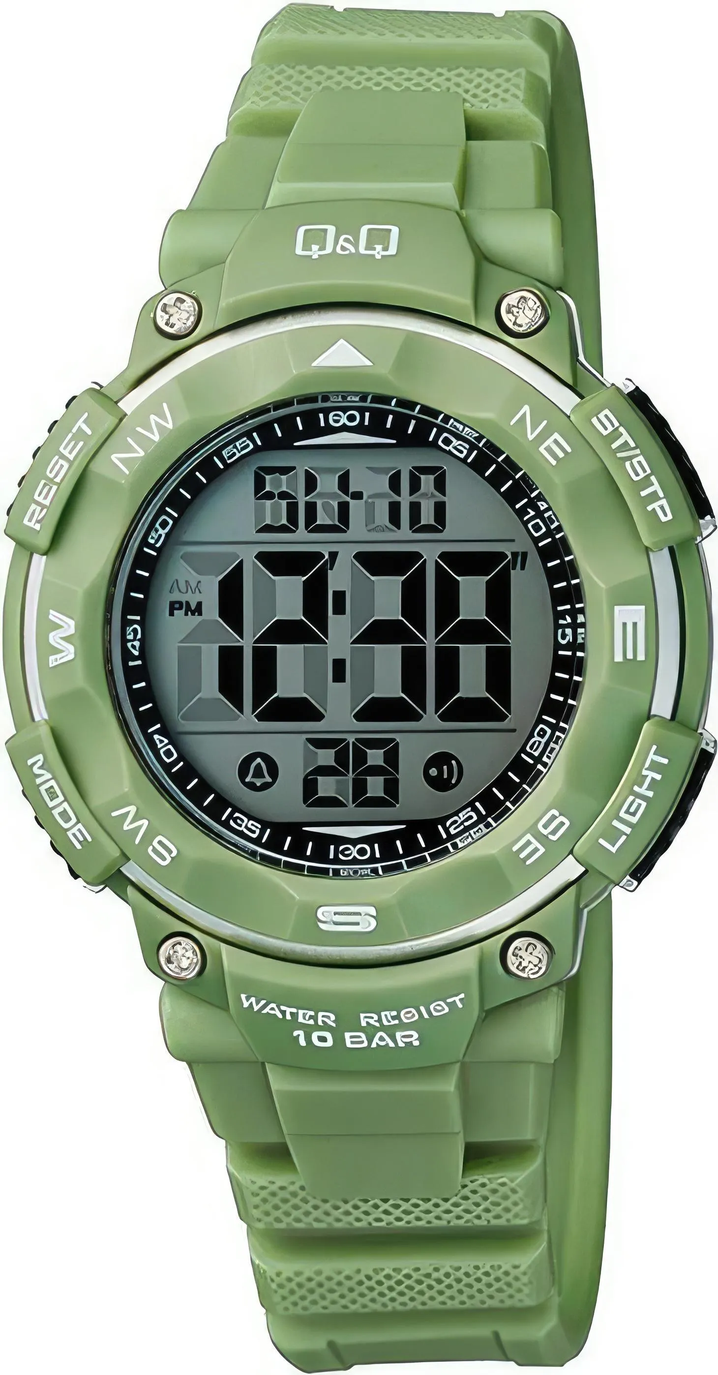 Женские наручные часы Q&Q Superior Women M149J011Y. Точный кварцевый механизм с цифровой индикацией. Полимерный корпус надежно защищает часы от механических повреждений. Светодиодная подсветка. На циферблате отображается текущее число, месяц и день недели. Функция хронографа. Полимерный ремешок. Натуральный полимерный материал является идеальным для изготовления ремешка благодаря своей чрезвычайной прочности и гибкости. Органическое стекло. Часы являются водонепроницаемыми до 10 Бар. Цвет корпуса: Зеленый. Цвет циферблата: Серый. Ширина (с заводной головкой): 42мм. Толщина: 11мм. Гарантия: 1 год.