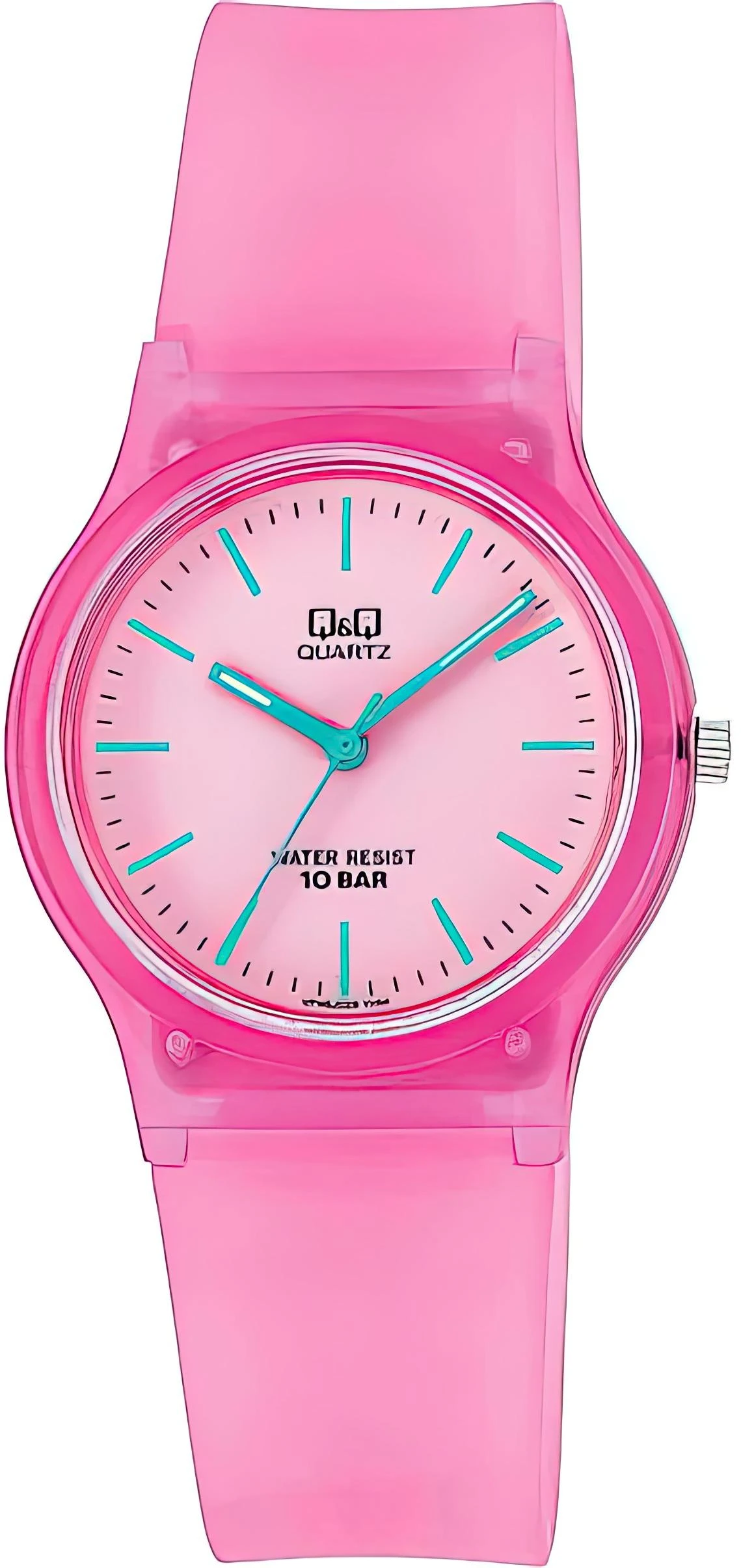 Детские наручные часы Q&Q VP46J029Y. Точный кварцевый механизм с аналоговой индикацией. Полимерный корпус надежно защищает часы от механических повреждений. Полимерный ремешок. Натуральный полимерный материал является идеальным для изготовления ремешка благодаря своей чрезвычайной прочности и гибкости. Прочное, устойчивое к царапинам минеральное стекло защищает часы от повреждений.Часы являются водонепроницаемыми до 10 Бар. Цвет корпуса: Розовый. Цвет циферблата: Розовый. Гарантия: 1 год.