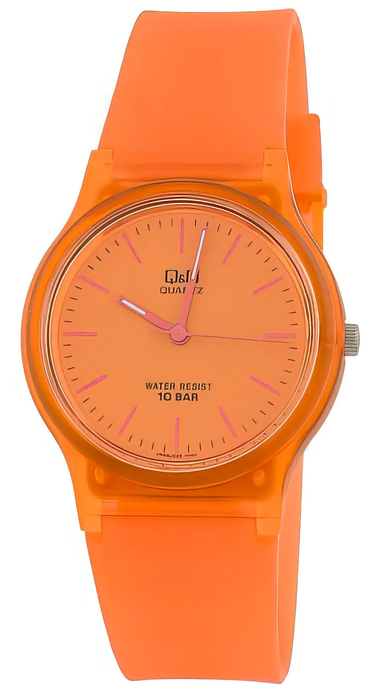 Детские наручные часы Q&Q VP46J035Y. Точный кварцевый механизм с аналоговой индикацией. Полимерный корпус надежно защищает часы от механических повреждений. Полимерный ремешок. Натуральный полимерный материал является идеальным для изготовления ремешка благодаря своей чрезвычайной прочности и гибкости. Прочное, устойчивое к царапинам минеральное стекло защищает часы от повреждений.Часы являются водонепроницаемыми до 10 Бар. Цвет корпуса: Оранжевый. Цвет циферблата: Оранжевый. Гарантия: 1 год.