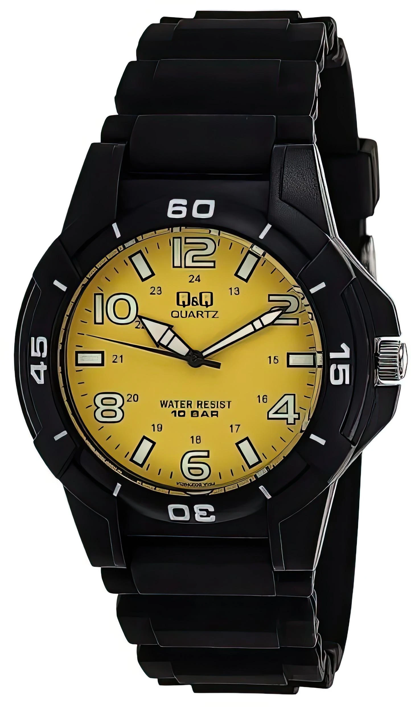 Мужские наручные часы Q&Q VQ84J009Y. Точный кварцевый механизм с аналоговой индикацией. Полимерный корпус надежно защищает часы от механических повреждений. Полимерный ремешок. Натуральный полимерный материал является идеальным для изготовления ремешка благодаря своей чрезвычайной прочности и гибкости. Прочное, устойчивое к царапинам минеральное стекло защищает часы от повреждений.Часы являются водонепроницаемыми до 10 Бар. Цвет корпуса: Черный. Гарантия: 1 год.