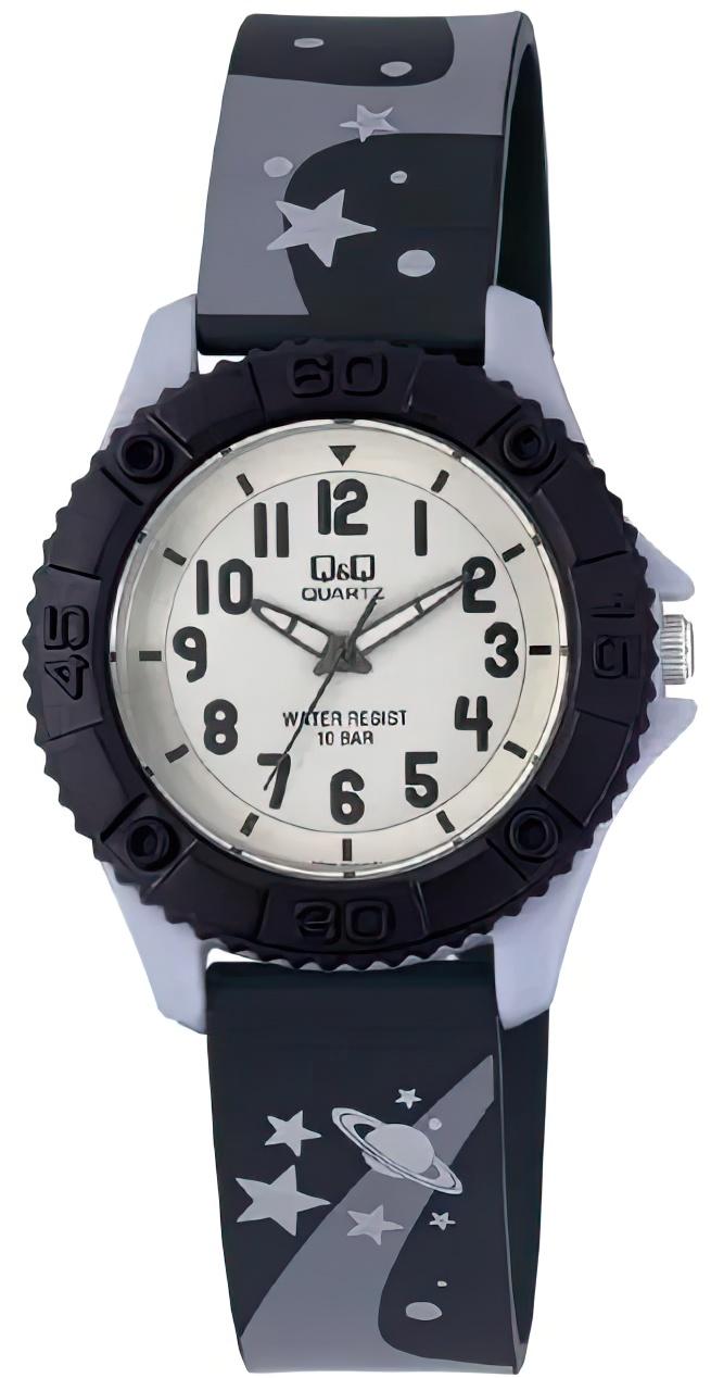 <b>Детские наручные часы с высокой водозащитой. Корпус часов изготовлен из гипоаллергенного пластика. Безель черного цвета с ребристыми краями. Ремешок с космическим принтом выполнен из прочного каучука. Заводная головка с защитой.</b><br><br>• Японский кварцевый механизм.<br>• Центральные часовая, минутная и секундная стрелки.<br>• Точность хода не хуже -/+20 сек. в месяц.<br>• Минеральное стекло устойчивое к возникновению царапин.<br>• Корпус из полимерного материала.<br>• Ремешок из натурального каучука.<br>• Простая ремешковая застежка.<br>• Водозащита до 10 АТМ.