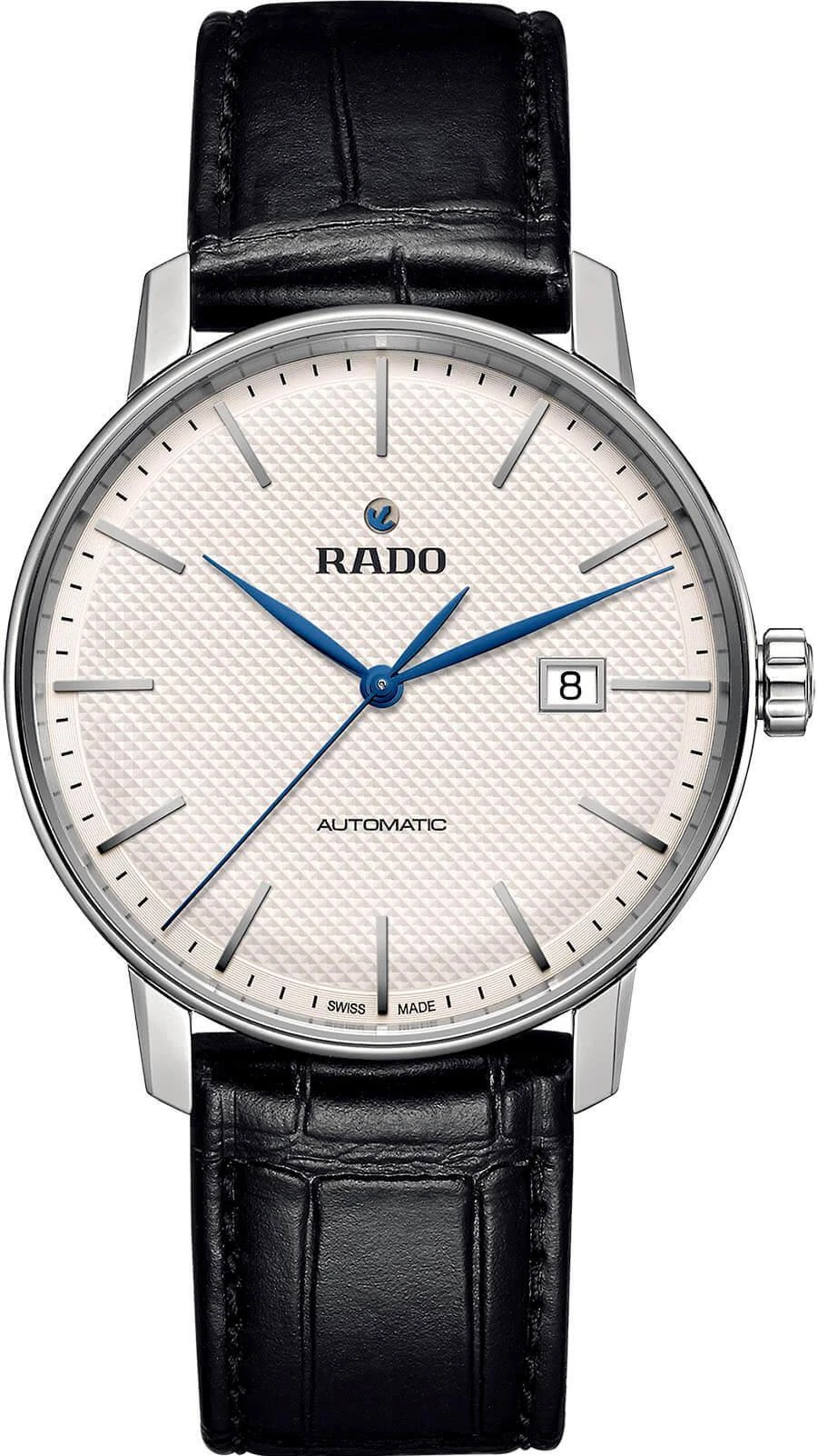 RADO Мужские швейцарские часы Coupole R22876015. Механические с автоподзаводом. Пружина механизма заводится автоматически благодаря естественным движениям владельца в процессе ежедневной носки часов. Ремешок изготовлен из кожи. Гибкость такого ремешка позволяет точно регулировать посадку часов на руке. Корпус изготовлен из высококачественной нержавеющей стали 316L с высокими антикоррозийными свойствами. Сапфировое стекло. Искусственно изготовленное стекло с высокой прочностью и устойчивостью к царапинам. Часы являются водонепроницаемыми до 5 Бар. Цвет корпуса: Серебристый. Цвет корпуса: Черный. Цвет циферблата: Белый. Толщина: 10.3 мм. Гарантия: 2 года.