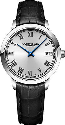 Мужские наручные часы Raymond Weil Toccata 5385-STC-00659. Точный кварцевый механизм с аналоговой индикацией. Ремешок изготовлен из кожи. Браслет из нержавеющей стали. Сапфировое стекло. Искусственно изготовленное стекло с высокой прочностью и устойчивостью к царапинам. На циферблате отображается текущее число месяца. Часы являются водонепроницаемыми до 5 Бар. Цвет циферблата: Серебристый. Цвет корпуса: Серебристый. Толщина: 7 мм. Гарантия: 2 года.