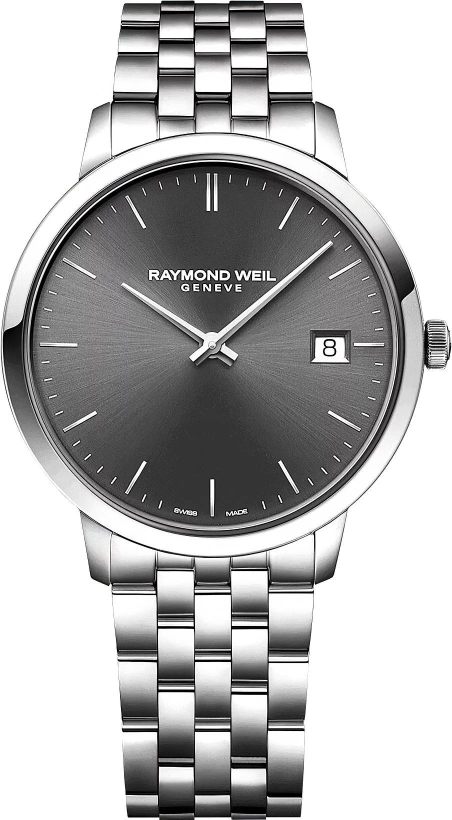 Мужские наручные часы Raymond Weil Toccata 5485-ST-60001. Точный кварцевый механизм с аналоговой индикацией. Браслет из нержавеющей стали. Браслет из нержавеющей стали. Сапфировое стекло. Искусственно изготовленное стекло с высокой прочностью и устойчивостью к царапинам. На циферблате отображается текущее число месяца. Часы являются водонепроницаемыми до 5 Бар. Цвет циферблата: Серебристый. Цвет корпуса: Черный. Толщина: 8 мм. Гарантия: 2 года.