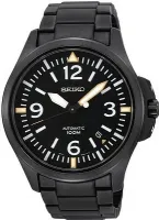 • Автоматический механизм калибр 4R16 (22 камня, частота полуколебаний баланса 21600 полуоб/час.). • Механизм автоподзавода с возможностью ручного подзавода. • Центральная секундная стрелка. Апертура даты, дня недели. Запас хода 45 часов. Точность хода не хуже -15 +25 сек./в сутки. • Стекло: Хардлекс (Hardlex) – специальный минеральный хрусталь повышенной прочности, закалённый в кислоте, разработанный компанией SEIKO, и значительно превосходящее обычное минеральное стекло по прочности. • Светонакопительный состав на стрелках и маркерах часа. • Задняя крышка с прозрачным смотровым окном. • Корпус из высококачественного стального сплава 316L с высокими антикоррозийными свойствами. • Водозащита до 10 АТМ. • Литой браслет из нержавеющей стали. • Надежный браслетный замок с тройным сгибом. • Ширина корпуса 46,5 мм (по оси заводной головки, включая головку). • Толщина корпуса 12 мм.