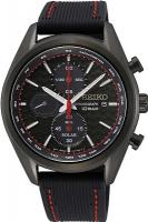 Японский кварцевый механизм SEIKO с системой Solar - подзарядка от солнечных батарей, калибр V176. • Точность хода с погрешностью не более ± 15 секунд в месяц. • Перезаряжаемая аккумуляторная батарея с высокой емкостью обеспечивает около 6 месяцев работы после полной зарядки. • Центральные часовая, минутная стрелки и маленький секундный индикатор на «9 часах». • Хронограф с центральной секундной стрелкой, 60-минутным накопителем и счетчиком долей секунды. Точность измерений 1/20 секунды. Режимы ADD - измерение времени с перерывом и SPLIT (сплит-хронограф) - промежуточный финиш. • Суточный 24-часовой индикатор на «6 часах». • Окошко даты. • Индикация низкого уровня заряда батареи посредством движения секундной стрелки. • Сапфировое стекло устойчивое к царапанию. • Светонакопительный состав на стрелках и маркерах часа. • Корпус из высококачественной нержавеющей стали со стойким PVD покрытием. • Водозащита до 10 АТМ. • Ремешок из силикона.