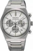 Мужские наручные часы Seiko Discover More SSB451P1. Точный кварцевый механизм с аналоговой индикацией. Браслет из нержавеющей стали. Функция хронографа. Браслет из нержавеющей стали. Сапфировое стекло. Искусственно изготовленное стекло с высокой прочностью и устойчивостью к царапинам. На циферблате отображается текущее число месяца. Часы являются водонепроницаемыми до 10 Бар. Цвет циферблата: Серебристый. Цвет корпуса: Белый. На стрелки и отметки нанесен светонакопительный состав, благодаря этому считывать информацию с циферблата возможно и в темноте. Толщина: 12 мм. Гарантия: 2 года.