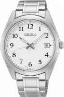 Мужские наручные часы Seiko Discover More SUR459P1. Точный кварцевый механизм с аналоговой индикацией. Браслет из нержавеющей стали. Браслет из нержавеющей стали. Сапфировое стекло. Искусственно изготовленное стекло с высокой прочностью и устойчивостью к царапинам. На циферблате отображается текущее число месяца. Часы являются водонепроницаемыми до 10 Бар. Цвет циферблата: Серебристый. Цвет корпуса: Белый. На стрелки и отметки нанесен светонакопительный состав, благодаря этому считывать информацию с циферблата возможно и в темноте. Высота (с ушками): 47 мм. Толщина: 8 мм. Гарантия: 2 года.