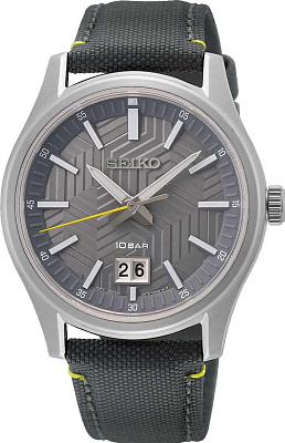 Мужские наручные часы Seiko Discover More SUR571P1. Точный кварцевый механизм с аналоговой индикацией. Текстильный ремешок. Браслет из нержавеющей стали. Сапфировое стекло. Искусственно изготовленное стекло с высокой прочностью и устойчивостью к царапинам. На циферблате отображается текущее число месяца. Часы являются водонепроницаемыми до 10 Бар. Цвет циферблата: Черный. Цвет корпуса: Черный. На стрелки и отметки нанесен светонакопительный состав, благодаря этому считывать информацию с циферблата возможно и в темноте. Толщина: 10 мм. Гарантия: 2 года.