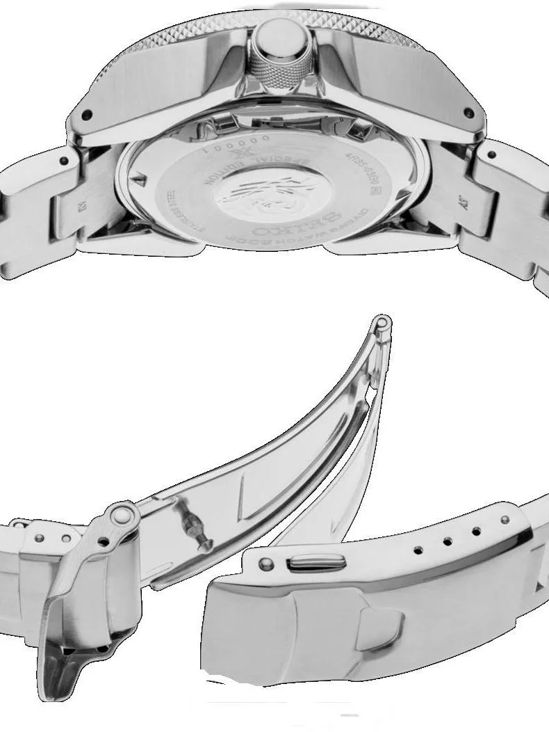 Автоматический механизм калибр 4R35 (23 камня, частота полуколебаний баланса 21600 полуоб/час.). Механизм автоподзавода с возможностью ручного подзавода. Центральная секундная стрелка. Апертура даты. Запас хода 41 час. Точность хода не хуже -15 +25 сек./в сутки. • Минеральное стекло устойчивое к возникновению царапин. • Светонакопительный состав на стрелках и маркерах часа. • Корпус из высококачественного стального сплава 316L с высокими антикоррозийными свойствами. • Водозащита до 20 АТМ. • Завинчивающаяся заводная головка. • Литой браслет из нержавеющей стали. • Надежный браслетный замок с тройным сгибом. • Специальная конструкция браслета для возможности использования часов на гидрокостюме.