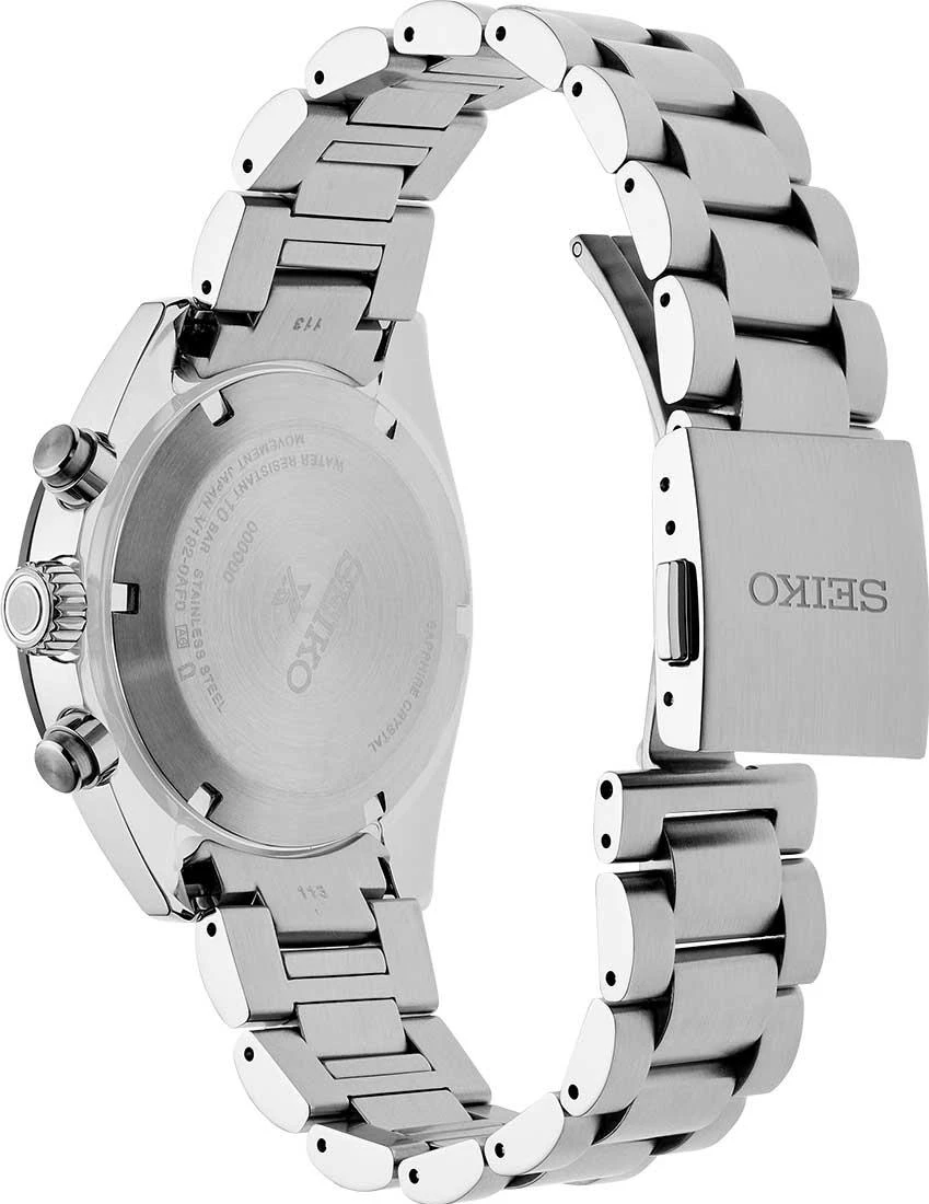 Мужские наручные часы Seiko Prospex SSC813P1. Точный кварцевый механизм с аналоговой индикацией. В отличие от механических часов, не требуют завода и работают от батареи, показывая отклонение всего несколько секунд в месяц. На стрелки и отметки нанесен светонакопительный состав, благодаря этому считывать информацию с циферблата возможно и в темноте. Браслет из нержавеющей стали обладает высокой прочностью и износостойкостью, обеспечивая долговечность даже при активной эксплуатации. Материал устойчив к коррозии и сохраняет свой внешний вид надолго. Функция хронографа. Солнечная батарейка. Солнечная подзаряжающаяся батарейка обеспечивает питание часов для работы. Индикатор запаса хода. Отображение времени возможно в 12-часовом или 24-часовом формате. Корпус изготовлен из высококачественной нержавеющей стали 316L с высокими антикоррозийными свойствами. Сапфировое стекло. Искусственно изготовленное стекло с высокой прочностью и устойчивостью к царапинам. Часы являются водонепроницаемыми до 10 Бар. Цвет корпуса: Серебристый. Цвет циферблата: Белый. Высота (с ушками): 45.5 мм. Толщина: 13.3 мм. Гарантия: 2 года.