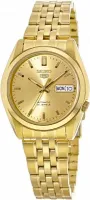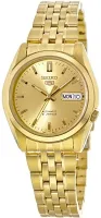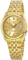 Мужские наручные часы Seiko Seiko 5 SNK366K1. Механические с ручным подзаводом. Браслет из нержавеющей стали. Браслет из нержавеющей стали. Прочное, устойчивое к царапинам минеральное стекло защищает часы от повреждений. На циферблате отображается текущее число месяца и день недели. Часы являются водонепроницаемыми до 3 Бар. Цвет циферблата: Желтое золото. Цвет корпуса: Золотистый. Толщина: 11 мм. Гарантия: 2 года.