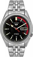 Мужские наручные часы Seiko Seiko 5 SNK375K1. Механические с автоподзаводом. Пружина механизма заводится автоматически благодаря естественным движениям владельца в процессе ежедневной носки часов. Браслет из нержавеющей стали. Браслет из нержавеющей стали. Прочное, устойчивое к царапинам минеральное стекло защищает часы от повреждений. На циферблате отображается текущее число месяца и день недели. Часы являются водонепроницаемыми до 3 Бар. Цвет циферблата: Серебристый. Цвет корпуса: Черный. На стрелки и отметки нанесен светонакопительный состав, благодаря этому считывать информацию с циферблата возможно и в темноте. Толщина: 12 мм. Гарантия: 2 года.