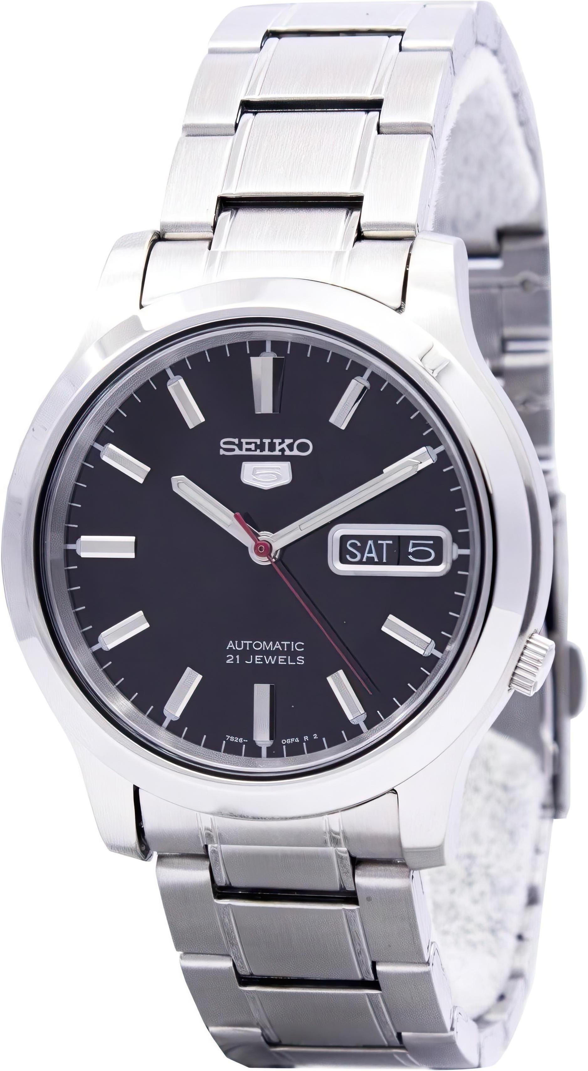 Мужские наручные часы Seiko Seiko 5 SNK795K1. Механические с ручным подзаводом. Корпус изготовлен из высококачественной нержавеющей стали 316L с высокими антикоррозийными свойствами. На стрелки и отметки нанесен светонакопительный состав, благодаря этому считывать информацию с циферблата возможно и в темноте. На циферблате отображается текущее число месяца и день недели. Браслет из нержавеющей стали. Прочное, устойчивое к царапинам минеральное стекло защищает часы от повреждений. Часы являются водонепроницаемыми до 3 Бар. Цвет корпуса: Серебристый. Цвет циферблата: Черный. Ширина (с заводной головкой): 37мм. Толщина: 11мм. Гарантия: 2 года.