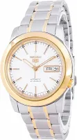 Мужские наручные часы Seiko Seiko 5 SNKE54J1. Механические с ручным подзаводом. Корпус изготовлен из высококачественной нержавеющей стали 316L с высокими антикоррозийными свойствами. На стрелки и отметки нанесен светонакопительный состав, благодаря этому считывать информацию с циферблата возможно и в темноте. На циферблате отображается текущее число месяца и день недели. Браслет из нержавеющей стали. Прочное, устойчивое к царапинам минеральное стекло защищает часы от повреждений. Часы являются водонепроницаемыми до 5 Бар. Цвет корпуса: Желтое золото. Цвет циферблата: Белый. Ширина (с заводной головкой): 38мм. Толщина: 10мм. Гарантия: 2 года.