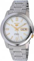 Мужские наручные часы Seiko Seiko 5 SNKK09K1. Механические с ручным подзаводом. Браслет из нержавеющей стали. Браслет из нержавеющей стали. Прочное, устойчивое к царапинам минеральное стекло защищает часы от повреждений. На циферблате отображается текущее число месяца и день недели. Часы являются водонепроницаемыми до 3 Бар. Цвет циферблата: Серебристый. Цвет корпуса: Белый. На стрелки и отметки нанесен светонакопительный состав, благодаря этому считывать информацию с циферблата возможно и в темноте. Толщина: 11 мм. Гарантия: 2 года.