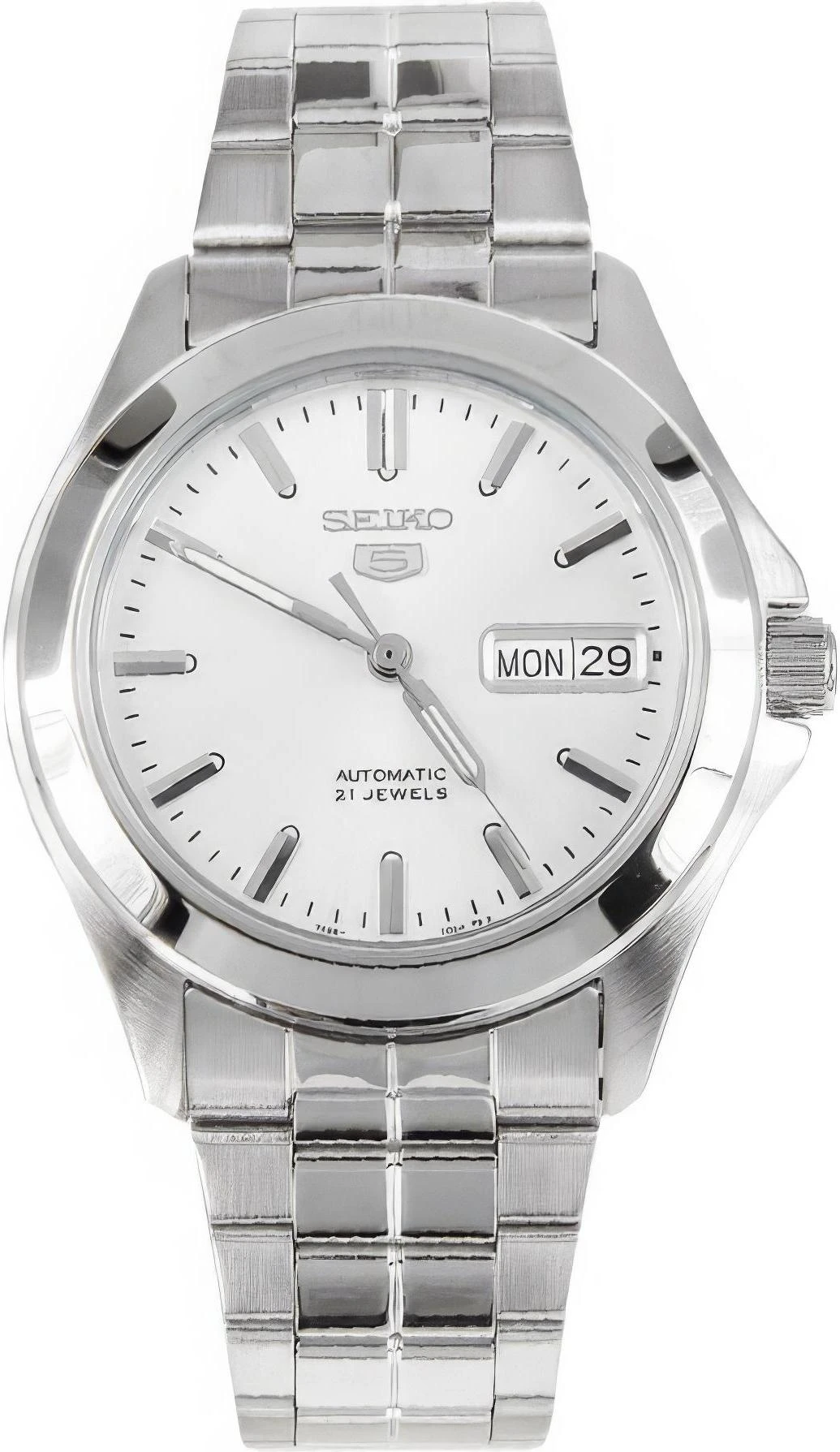 Мужские наручные часы Seiko Seiko 5 SNKK87K1. Механические с автоподзаводом. Пружина механизма заводится автоматически благодаря естественным движениям владельца в процессе ежедневной носки часов. Браслет из нержавеющей стали. Браслет из нержавеющей стали. Прочное, устойчивое к царапинам минеральное стекло защищает часы от повреждений. На циферблате отображается текущее число месяца и день недели. Часы являются водонепроницаемыми до 3 Бар. Цвет циферблата: Серебристый. Цвет корпуса: Белый. На стрелки и отметки нанесен светонакопительный состав, благодаря этому считывать информацию с циферблата возможно и в темноте. Толщина: 11 мм. Гарантия: 2 года.