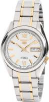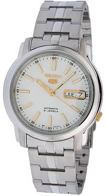 Мужские наручные часы Seiko Seiko 5 SNKL57K1. Механические с ручным подзаводом. Браслет из нержавеющей стали. Браслет из нержавеющей стали. Прочное, устойчивое к царапинам минеральное стекло защищает часы от повреждений. На циферблате отображается текущее число месяца и день недели. Часы являются водонепроницаемыми до 3 Бар. Цвет циферблата: Серебристый. Цвет корпуса: Белый. Толщина: 11 мм. Гарантия: 2 года.