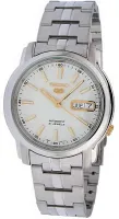 Мужские наручные часы Seiko Seiko 5 SNKL77K1. Механические с ручным подзаводом. Браслет из нержавеющей стали. Браслет из нержавеющей стали. Прочное, устойчивое к царапинам минеральное стекло защищает часы от повреждений. На циферблате отображается текущее число месяца и день недели. Часы являются водонепроницаемыми до 3 Бар. Цвет циферблата: Серебристый. Цвет корпуса: Белый. На стрелки и отметки нанесен светонакопительный состав, благодаря этому считывать информацию с циферблата возможно и в темноте. Толщина: 10 мм. Гарантия: 2 года.