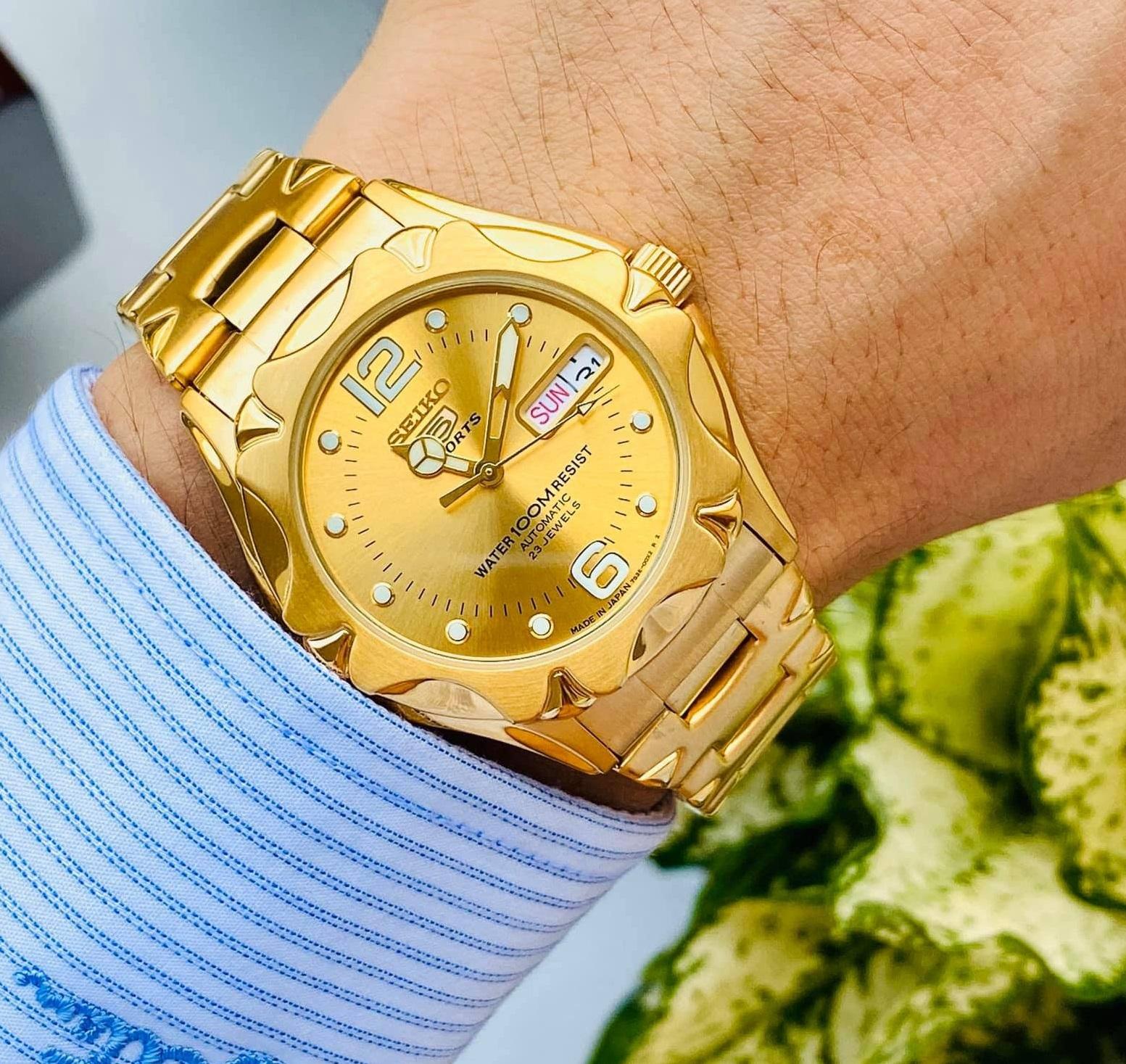 Мужские наручные часы Seiko Seiko 5 SNZ460J1. Механические с автоподзаводом. Пружина механизма заводится автоматически благодаря естественным движениям владельца в процессе ежедневной носки часов. Корпус изготовлен из высококачественной нержавеющей стали 316L с высокими антикоррозийными свойствами. На стрелки и отметки нанесен светонакопительный состав, благодаря этому считывать информацию с циферблата возможно и в темноте. На циферблате отображается текущее число месяца и день недели. Аккумулятор обеспечивает часы достаточным питанием приблизительно на 3 года. Браслет из нержавеющей стали. Прочное, устойчивое к царапинам минеральное стекло защищает часы от повреждений. Часы являются водонепроницаемыми до 10 Бар. Цвет корпуса: Желтое золото. Цвет циферблата: Золотистый. Ширина (с заводной головкой): 38мм. Толщина: 12мм. Гарантия: 2 года.