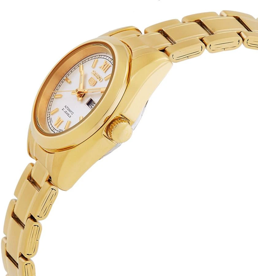 Женские наручные часы Seiko Seiko 5 SYMK30K1. Механические с автоподзаводом. Пружина механизма заводится автоматически благодаря естественным движениям владельца в процессе ежедневной носки часов. На стрелки и отметки нанесен светонакопительный состав, благодаря этому считывать информацию с циферблата возможно и в темноте. Браслет из нержавеющей стали обладает высокой прочностью и износостойкостью, обеспечивая долговечность даже при активной эксплуатации. Материал устойчив к коррозии и сохраняет свой внешний вид надолго. Корпус изготовлен из высококачественной нержавеющей стали 316L с высокими антикоррозийными свойствами. Прочное, устойчивое к царапинам минеральное стекло защищает часы от повреждений. Часы являются водонепроницаемыми до 3 Бар. Цвет корпуса: Желтое золото. Цвет циферблата: Белый. Высота (с ушками): 31 мм. Толщина: 10.2 мм. Гарантия: 2 года.