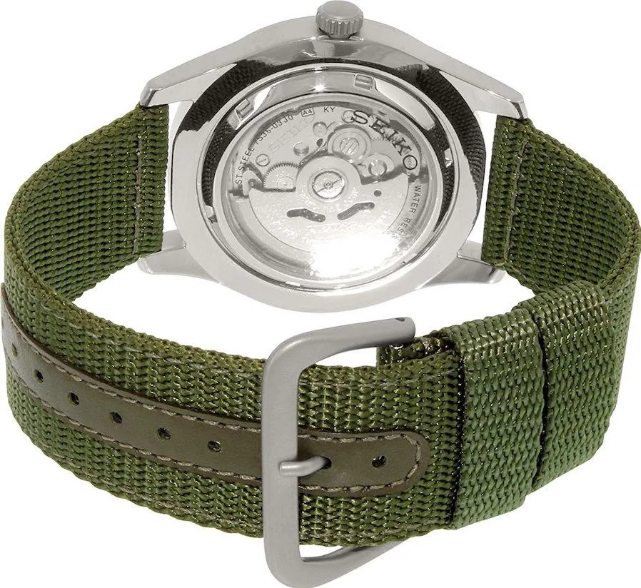 Механические часы с автоподзаводом исполненные в милитари стиле. Стальной корпус на тканевом ремешке песочного цвета. Четкая, читаемая разметка. Календарь типа день-дата.