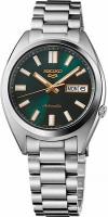 Механические часы с автоподзаводом и возможностью ручного завода. Калибр механизма 4R36. 24 камня. Частота 21 600 полуколебаний в час. Запас хода 41 час. Точность хода -25+35 секунд в сутки. Центральные часовая, минутная и секундная стрелки. Апертура даты и дня недели в позиции 3 часов. На стрелках и часовых метках покрытие LumiBrite. Зеленый циферблат. Круглый корпус выполнен из нержавеющей стали. Диаметр корпуса составляет 37,4 мм, толщина 12,5 мм. Заводная головка смещена в положение 4 часов. Стальной браслет шириной 18 мм, тройная раскладывающаяся застежка с фиксатором. Закаленное минеральное стекло Hardlex, устойчивое к мелким механическим повреждениям. Прозрачная задняя крышка. Водостойкость WR 100.