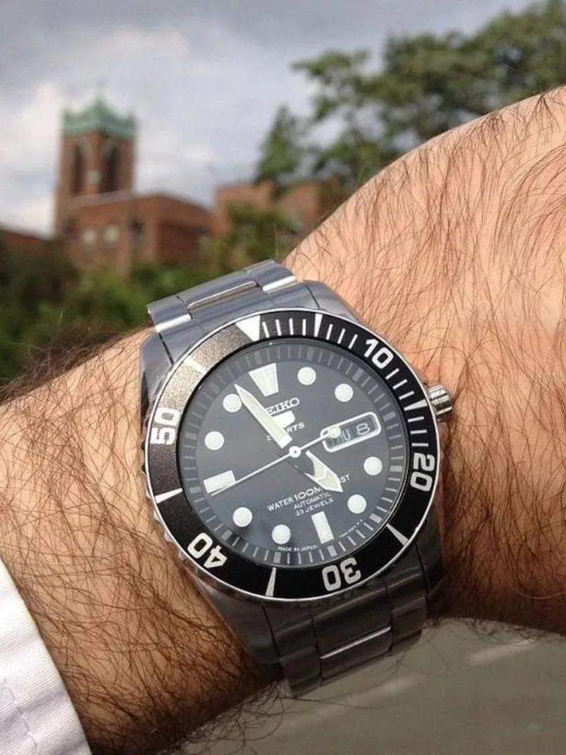 • Циферблат в дайверском стиле, аппликация крупных часовых меток.