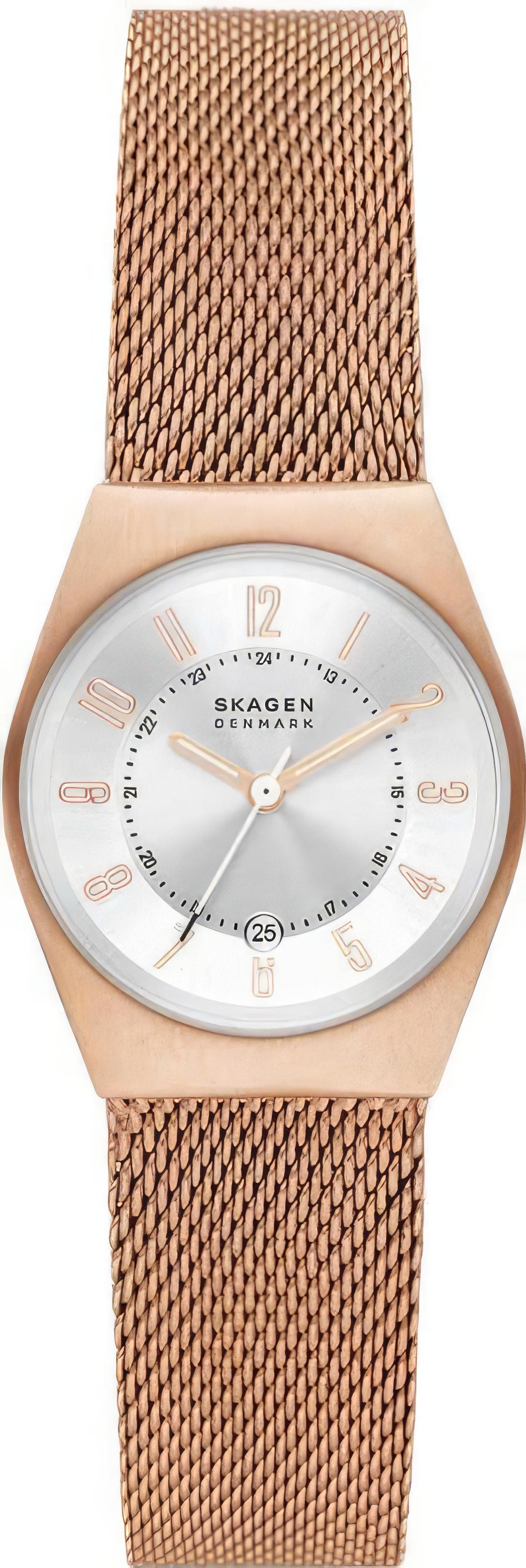 Женские наручные часы Skagen GRENEN SKW3035. Точный кварцевый механизм с аналоговой индикацией. Браслет из нержавеющей стали. Отображение времени возможно в 12-часовом или 24-часовом формате. Браслет из нержавеющей стали. Прочное, устойчивое к царапинам минеральное стекло защищает часы от повреждений. На циферблате отображается текущее число месяца. Часы являются водонепроницаемыми до 3 Бар. Цвет циферблата: Розовое золото. Цвет корпуса: Серебристый. На стрелки и отметки нанесен светонакопительный состав, благодаря этому считывать информацию с циферблата возможно и в темноте. Толщина: 7 мм. Гарантия: 2 года.