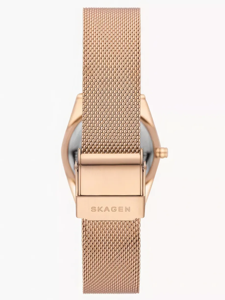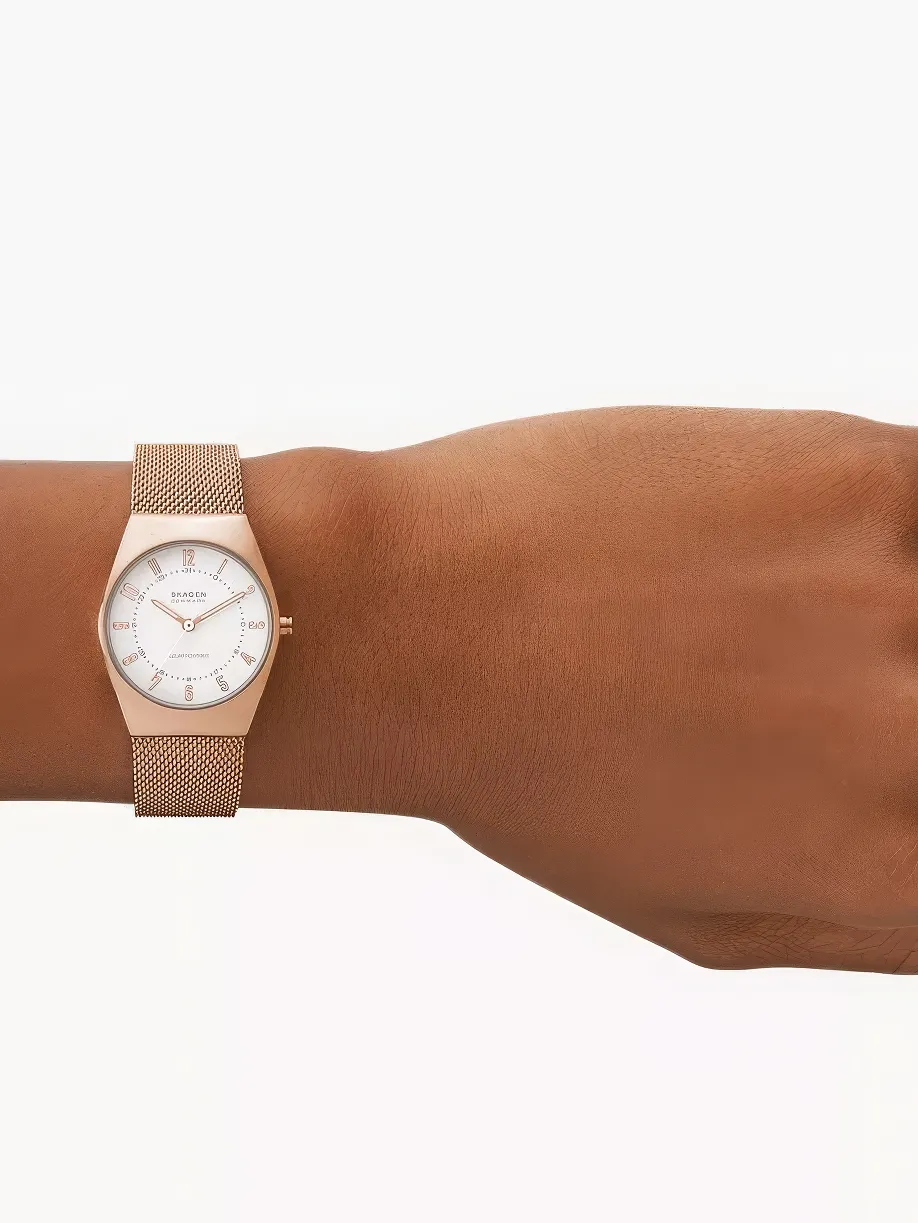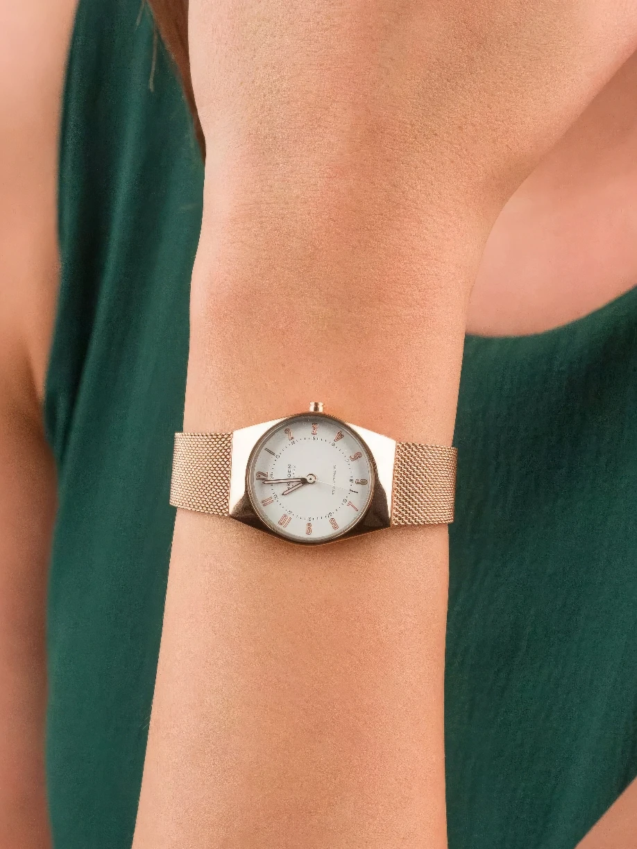 Женские наручные часы Skagen GRENEN SKW3078. Точный кварцевый механизм с аналоговой индикацией. Браслет из нержавеющей стали. Браслет из нержавеющей стали. Прочное, устойчивое к царапинам минеральное стекло защищает часы от повреждений. Часы являются водонепроницаемыми до 3 Бар. Цвет циферблата: Розовое золото. Цвет корпуса: Белый. На стрелки и отметки нанесен светонакопительный состав, благодаря этому считывать информацию с циферблата возможно и в темноте. Толщина: 5 мм. Гарантия: 2 года.