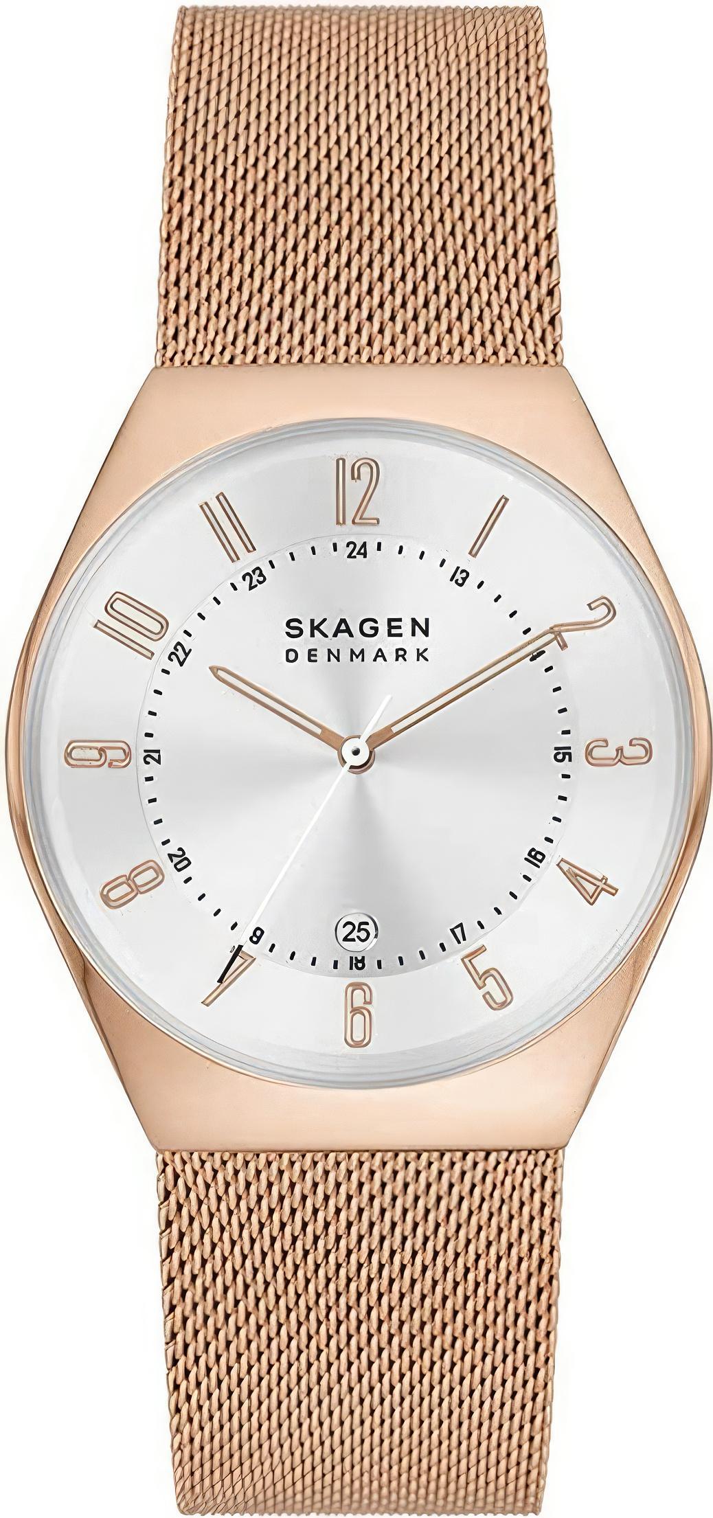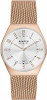 Мужские наручные часы Skagen GRENEN SKW6818. Точный кварцевый механизм с аналоговой индикацией. Корпус изготовлен из высококачественной нержавеющей стали 316L с высокими антикоррозийными свойствами. На стрелки и отметки нанесен светонакопительный состав, благодаря этому считывать информацию с циферблата возможно и в темноте. На циферблате отображается текущее число месяца. Браслет из нержавеющей стали. Прочное, устойчивое к царапинам минеральное стекло защищает часы от повреждений. Часы являются водонепроницаемыми до 3 Бар. Цвет корпуса: Розовое золото. Цвет циферблата: Белый. Ширина (с заводной головкой): 37мм. Толщина: 8мм. Гарантия: 2 года.