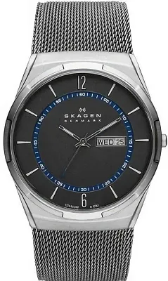 Мужские наручные часы Skagen GRENEN SKW6841. Точный кварцевый механизм с аналоговой индикацией. Корпус изготовлен из высококачественной нержавеющей стали 316L с высокими антикоррозийными свойствами. На стрелки и отметки нанесен светонакопительный состав, благодаря этому считывать информацию с циферблата возможно и в темноте. На циферблате отображается текущее число месяца и день недели. Браслет из нержавеющей стали. Прочное, устойчивое к царапинам минеральное стекло защищает часы от повреждений. Часы являются водонепроницаемыми до 3 Бар. Цвет корпуса: Черный. Цвет циферблата: Синий. Ширина (с заводной головкой): 38мм. Толщина: 6мм. Гарантия: 2 года.