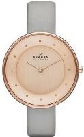 Кварцевые наручные часы без секундной стрелки в круглом стальном корпусе на кожаном ремешке.