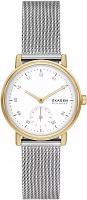 Женские наручные часы Skagen Kuppel SKW3101. Точный кварцевый механизм с аналоговой индикацией. Браслет из нержавеющей стали. Браслет из нержавеющей стали. Прочное, устойчивое к царапинам минеральное стекло защищает часы от повреждений. Часы являются водонепроницаемыми до 5 Бар. Цвет циферблата: Желтое золото. Цвет корпуса: Белый. На стрелки и отметки нанесен светонакопительный состав, благодаря этому считывать информацию с циферблата возможно и в темноте. Толщина: 8 мм. Гарантия: 2 года.