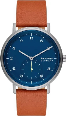 Мужские наручные часы Skagen Kuppel SKW6888. Точный кварцевый механизм с аналоговой индикацией. Ремешок изготовлен из кожи. Браслет из нержавеющей стали. Прочное, устойчивое к царапинам минеральное стекло защищает часы от повреждений. Часы являются водонепроницаемыми до 5 Бар. Цвет циферблата: Серебристый. Цвет корпуса: Синий. На стрелки и отметки нанесен светонакопительный состав, благодаря этому считывать информацию с циферблата возможно и в темноте. Толщина: 12 мм. Гарантия: 2 года.