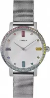 Timex Transcend — элегантные женские часы с современным дизайном и утончённой элегантностью. Серебристый латунный корпус идеально сочетается с серебристым циферблатом и стальным сетчатым браслетом, обеспечивая комфорт и стиль. Часы оснащены точным кварцевым механизмом, а минеральное стекло защищает циферблат от повреждений. Водонепроницаемость до 50 метров делает эту модель не только стильной, но и практичной для повседневного использования, предлагая отличный выбор для самых разных случаев.