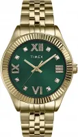 Timex Waterbury Legacy: классика в золотом сиянии. Модель с изящным 34-миллиметровым корпусом и браслетом из нержавеющей стали в золотистом покрытии станет акцентом вашего стиля. Благородный зеленый циферблат с римскими цифрами украшен изящными кристаллами, создающими игру света. Стрелки и метки покрыты люминесцентным составом для легкого считывания времени в вечерних условиях. Практичность модели обеспечивает кварцевый механизм с точным ходом, удобное окно даты на отметке "3 часа" и минеральное стекло, устойчивое к царапинам.