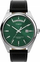 Timex Legacy — классические мужские часы, сочетающие в себе элегантный дизайн и функциональность. Серебристый корпус из нержавеющей стали и зелёный циферблат с отделкой «солнечные лучи» придают им уникальный вид. Часы оснащены указателем дня недели и месяца, а также увеличительным стеклом для удобства считывания показаний. Чёрный ремешок из искусственной кожи обеспечивает комфорт при ношении. Кварцевый механизм гарантирует точность хода, а минеральное стекло защищает циферблат от повреждений. Водонепроницаемость 50 метров делает эти часы идеальными для повседневного использования.