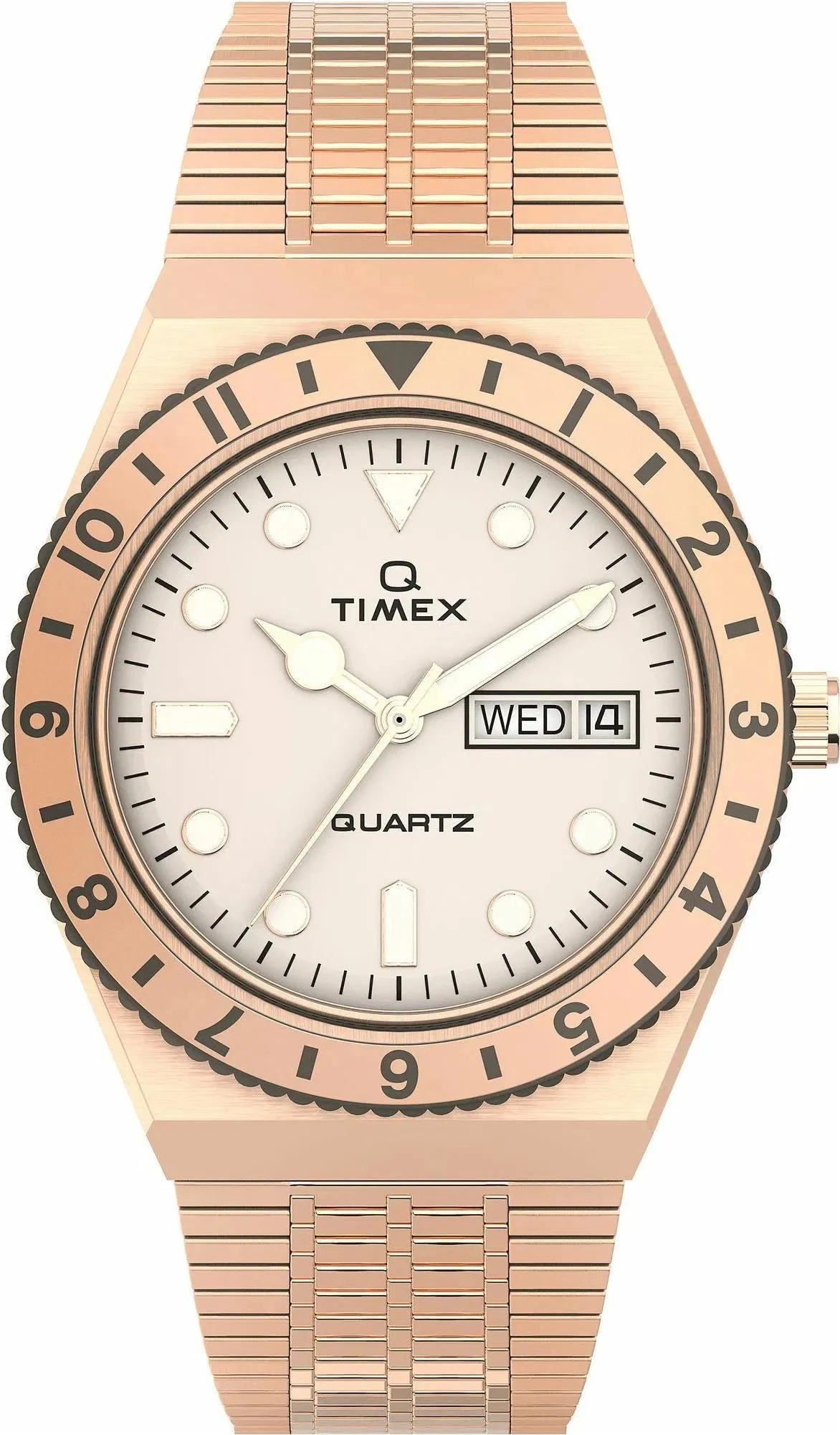 Женские наручные часы Timex Easy Reader TW2U95700. Точный кварцевый механизм с аналоговой индикацией. Корпус изготовлен из высококачественной нержавеющей стали 316L с высокими антикоррозийными свойствами. На стрелки и отметки нанесен светонакопительный состав, благодаря этому считывать информацию с циферблата возможно и в темноте. На циферблате отображается текущее число месяца и день недели. Браслет из нержавеющей стали. Прочное, устойчивое к царапинам минеральное стекло защищает часы от повреждений. Часы являются водонепроницаемыми до 5 Бар. Цвет корпуса: Розовое золото. Цвет циферблата: Бежевый. Ширина (с заводной головкой): 36мм. Толщина: 12мм. Гарантия: 2 года.