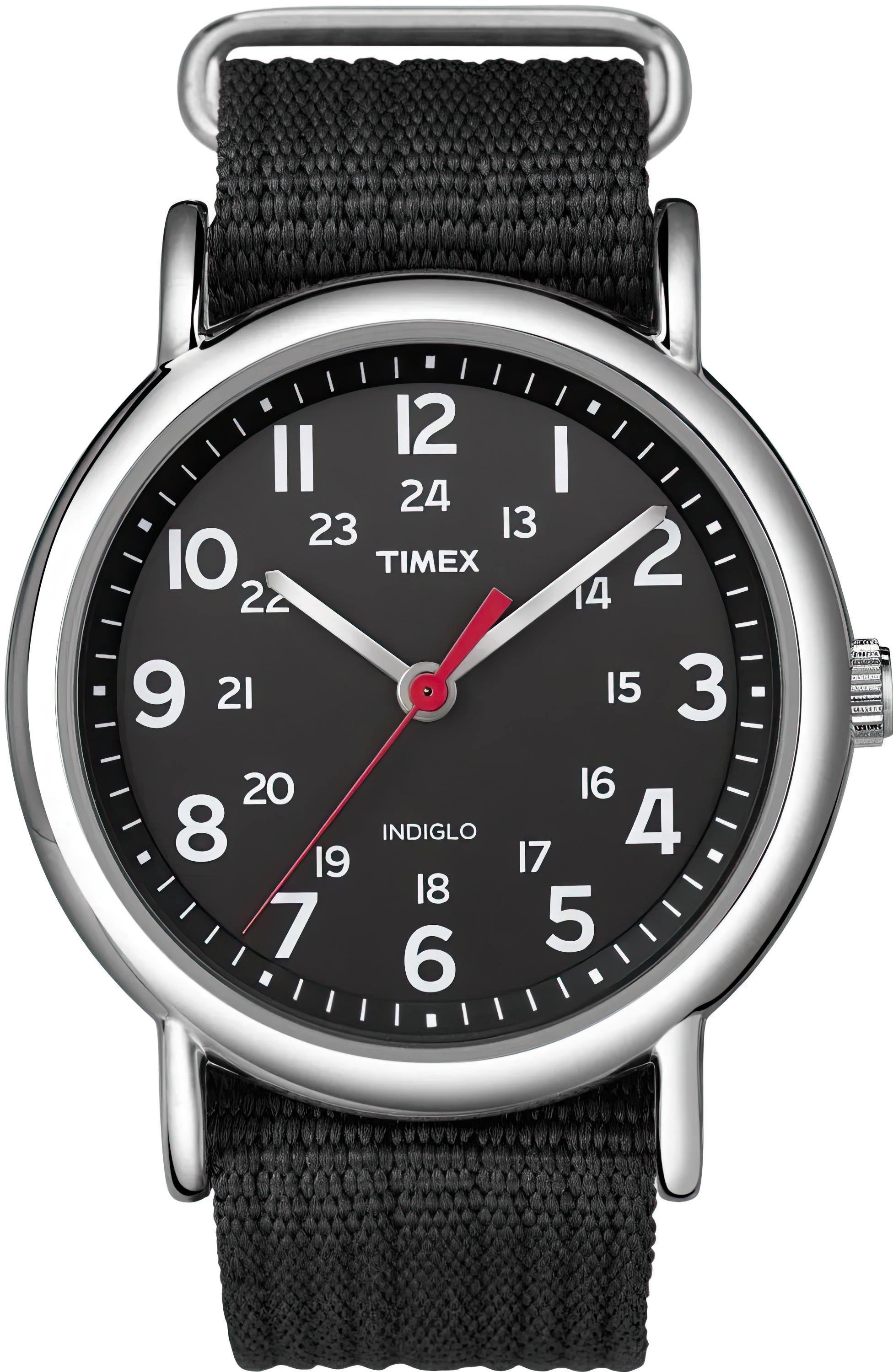 Мужские наручные часы с люминисцентной подсветкой INDIGLO на черном текстильном ремешке.